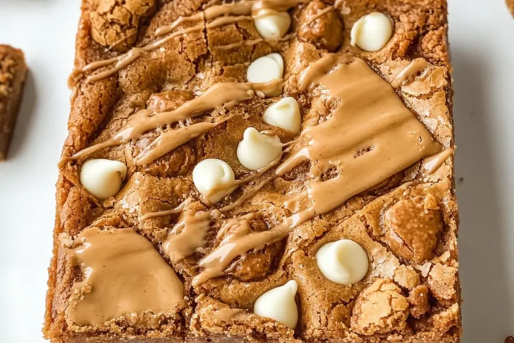 Biscoff Blondies sind eine süße Versuchung mit Keksbutter und weißer Schokolade, die schnell und einfach zubereitet werden können.