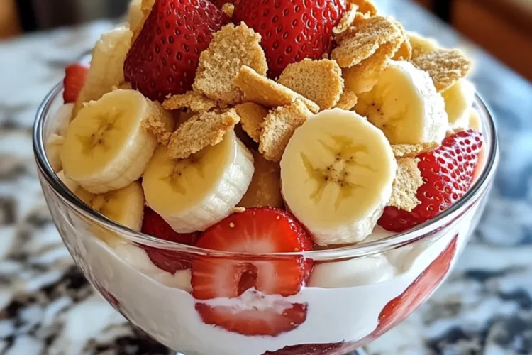 Einfachheit, die begeistert: Der Cremige Erdbeer-Bananenpudding ist schnell und ohne Backen zuzubereiten, perfekt für alle, die wenig Zeit haben.