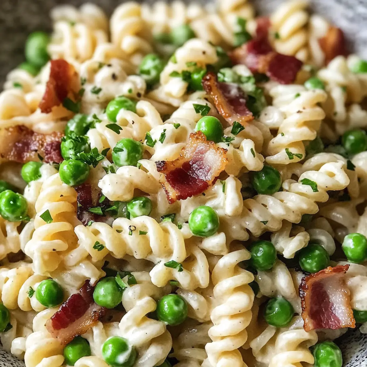Diese Zutaten sorgen dafür, dass dein cremiger Nudelsalat mit Speck und Erbsen garantiert zum Publikumsliebling wird!