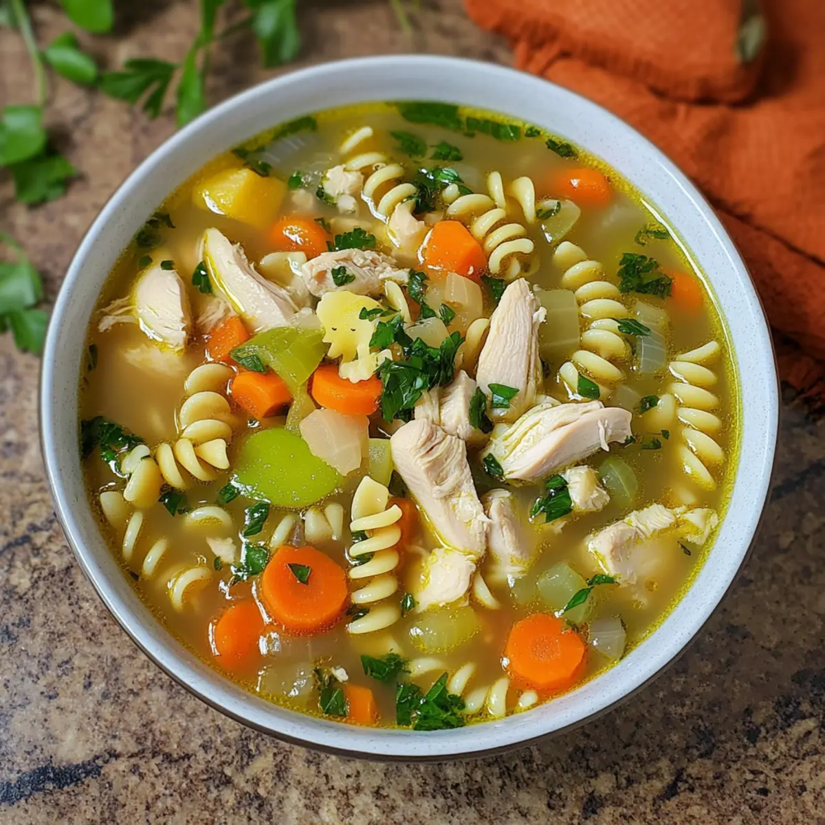 Ja, die Hühnersuppe lässt sich sehr gut anpassen! Wenn Sie eine glutenfreie Variante benötigen, ersetzen Sie die Nudeln durch Quinoa oder glutenfreie Nudeln. Bei Allergien oder Unverträglichkeiten sollten Sie Inhaltsstoffe sorgfältig prüfen und gegebenenfalls ersetzen. Beispielsweise können Rindersuppenfleisch weggelassen werden, wenn Sie eine rein vegetarische Variante wünschen.