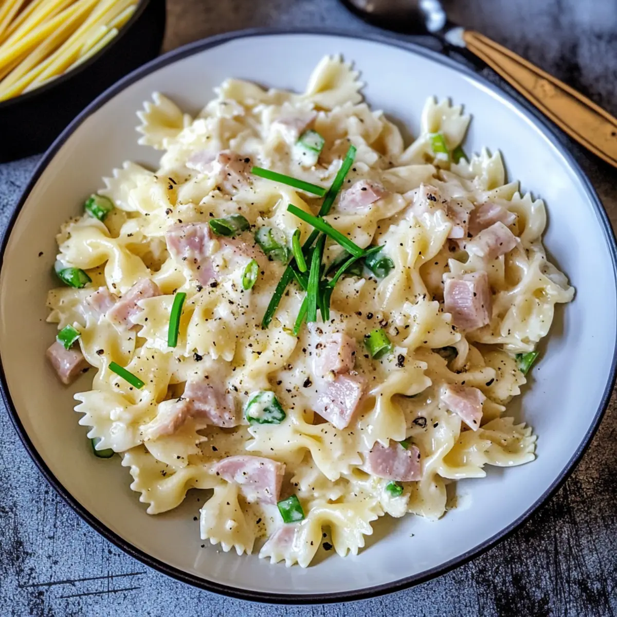 Ja, für eine vegetarische Option kannst du den Schinken weglassen und stattdessen mit gebratenen Champignons oder Spinat arbeiten. Wenn du vegan kochen möchtest, ersetze die Kochcreme durch pflanzliche Sahne und den Parmesan durch Nährhefe. So kannst du dennoch die köstlichen Aromen genießen!