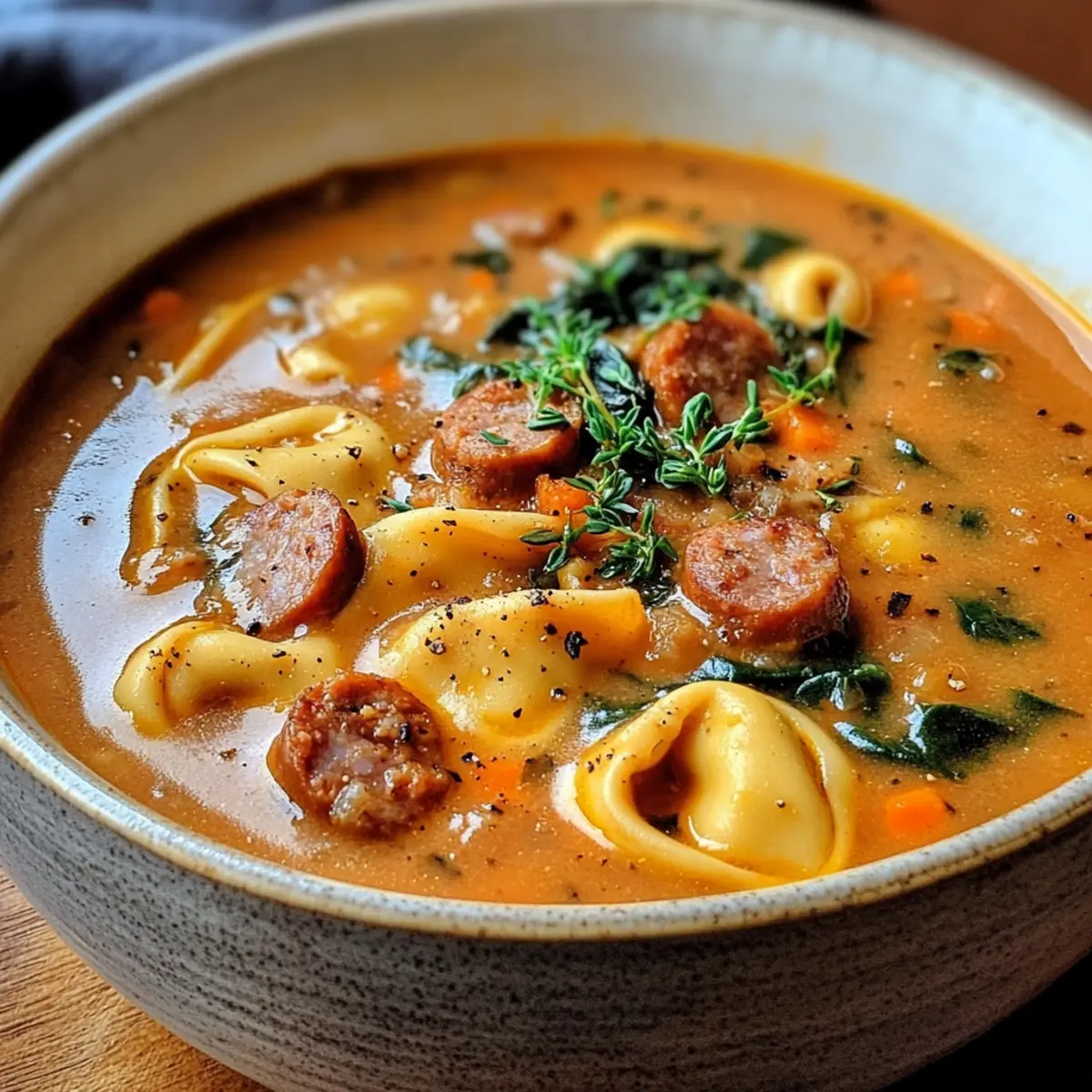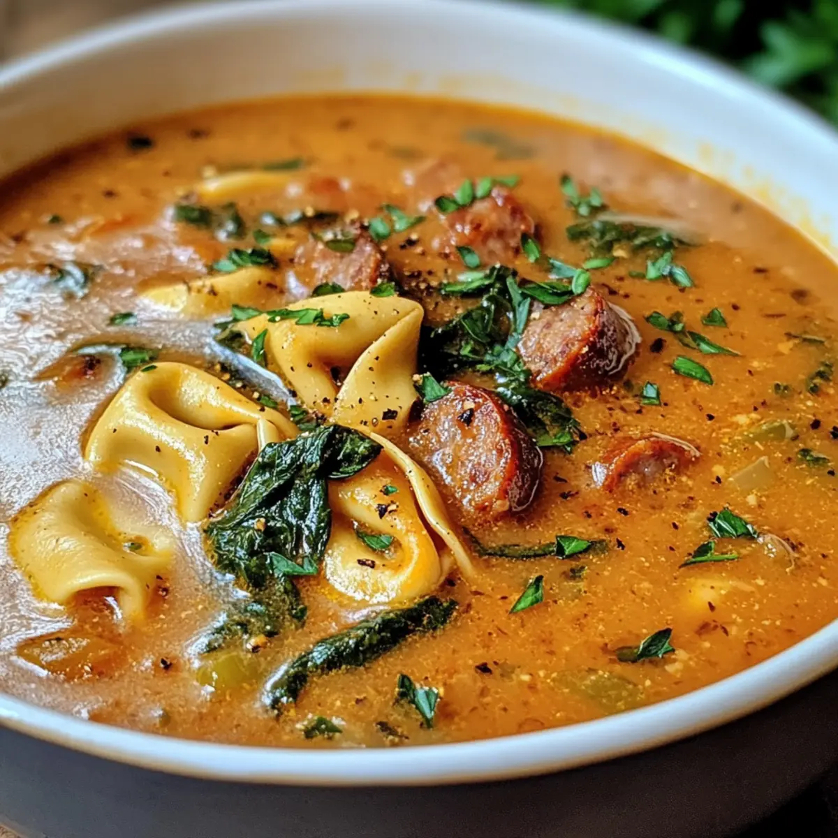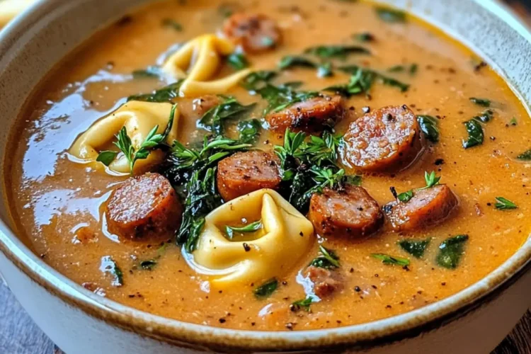 Herzhafter Geschmack: Die Kombination aus würziger Wurst und zartem Tortellini verleiht jedem Löffel einen reichhaltigen, befriedigenden Geschmack.