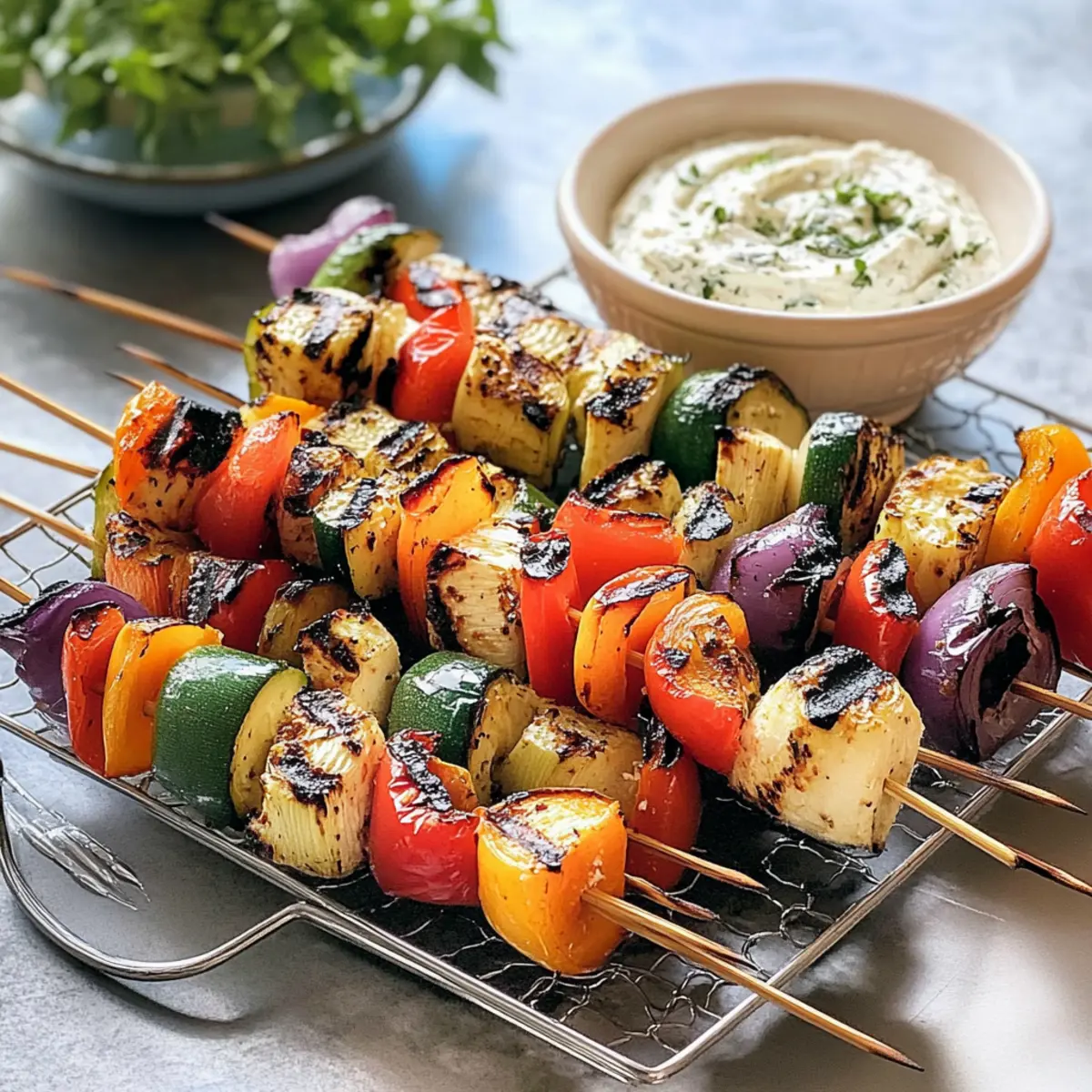 Vielfältige Optionen: Diese Grillspieße sind äußerst vielseitig – ob mit Zucchini, Paprika oder Auberginen, ihr könnt eure Lieblingsgemüse verwenden und nach Lust und Laune variieren. Gesund und Lecker: Vollgepackt mit Vitaminen und Antioxidantien, sind diese Spieße nicht nur köstlich, sondern auch eine gesunde Wahl für jede Grillparty. Einfach zuzubereiten: In nur wenigen Minuten sind sie fertig, was sie ideal für spontane Grillabende macht. Cremiger Dip: Der würzige Feta-Dip ergänzt die gegrillten Gemüsestücke perfekt und sorgt für eine cremige Textur, die begeistert. Für jedes Event geeignet: Ob als Vorspeise, Beilage zu Fleisch oder Hauptgericht, diese Grillspieße sind ein echter Publikumsliebling und sorgen für strahlende Gesichter.