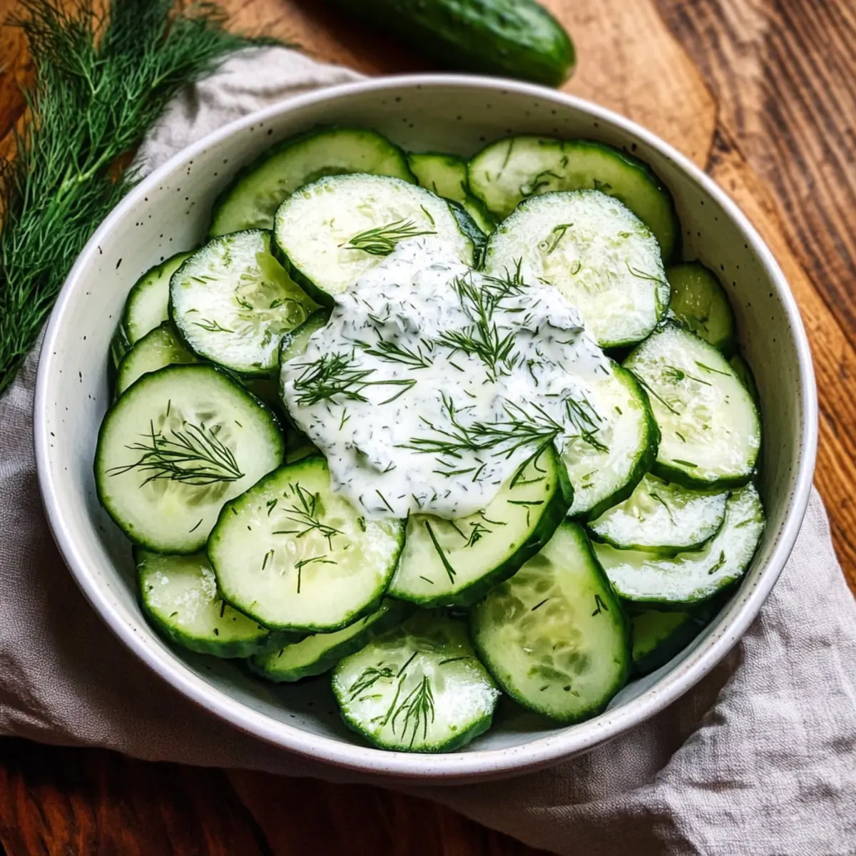 • Dressing variieren: Experimentieren Sie mit verschiedenen Kräutern oder Essigsorten, um Ihrem Gurkensalat eine persönliche Note zu verleihen. Frischer Schnittlauch oder Minze harmonieren ebenfalls wunderbar!