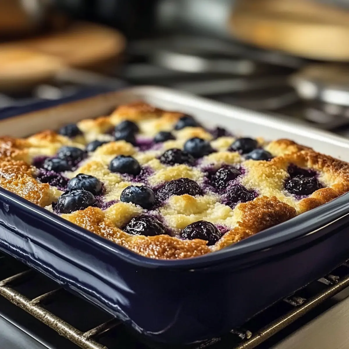 Nehmen Sie den Heidelbeerquark aus dem Ofen und lassen Sie ihn 5-10 Minuten abkühlen, bevor Sie ihn in Stücke schneiden. Dies hilft, die Struktur zu bewahren und das Servieren zu erleichtern. Genießen Sie ihn warm, vielleicht mit einem Klecks Joghurt oder einer leichten Sirupdrapierung!