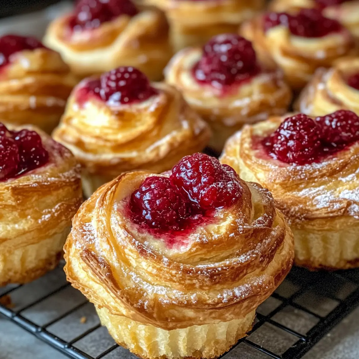Heize deinen Ofen auf 190 °C (375 °F) vor. Während der Ofen aufheizt, stelle sicher, dass du alle Zutaten bereit hast und der Blätterteig vollständig aufgetaut ist. Ein vorgeheizter Ofen sorgt dafür, dass die Himbeer-Frischkäse-Cruffins schön gleichmäßig und goldbraun gebacken werden.