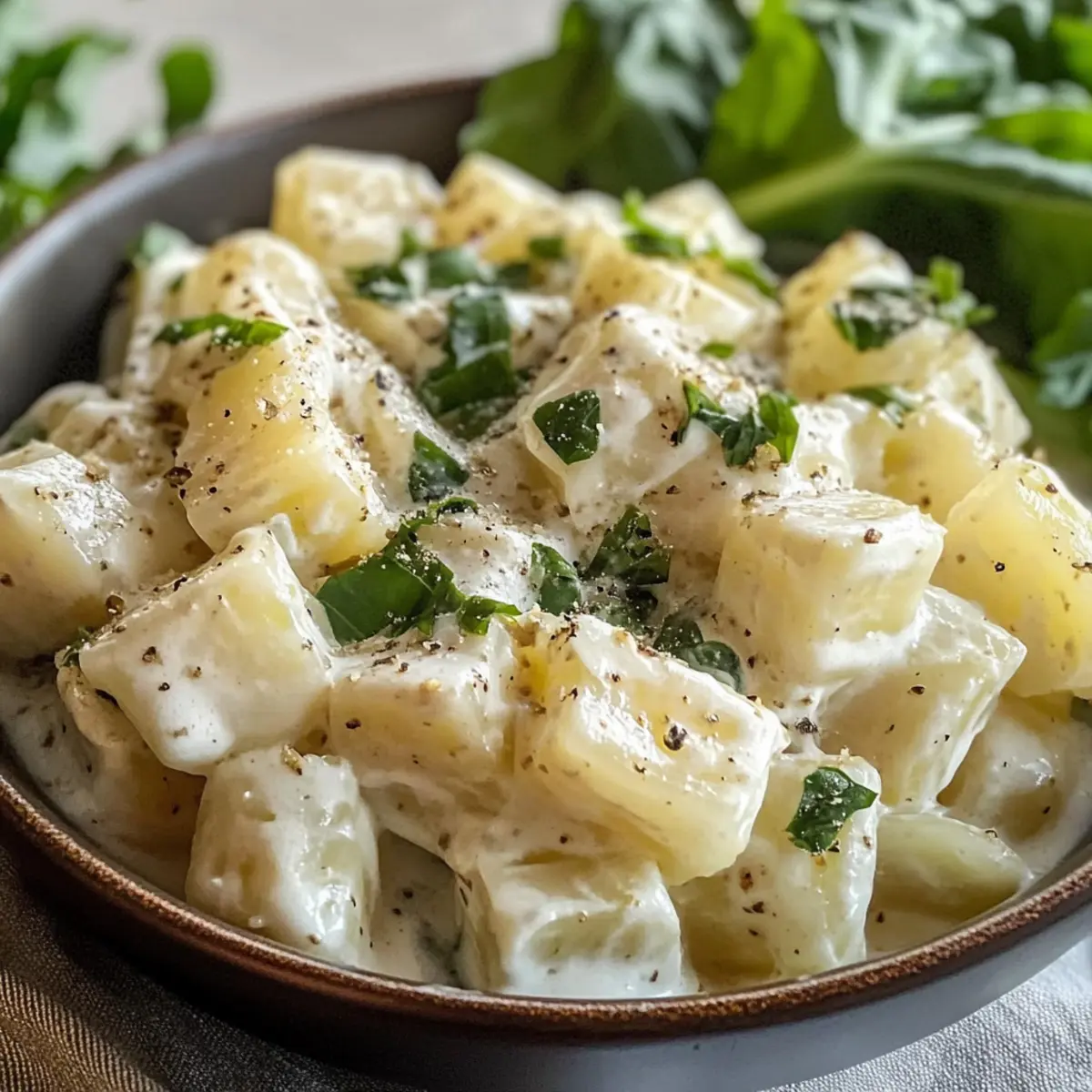 Käse hinzufügen: Füge geriebenen Parmesan oder Feta hinzu, um dem Gericht einen herzhaften, salzigen Geschmack zu verleihen. Das verleiht dem Rahmkohlrabi eine additional reichhaltige Note.