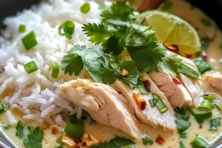 Bereitet euch vor auf einen unvergleichlichen Genuss mit diesem köstlichen Kokosnuss-Hühnchen-Brühe-Reis!