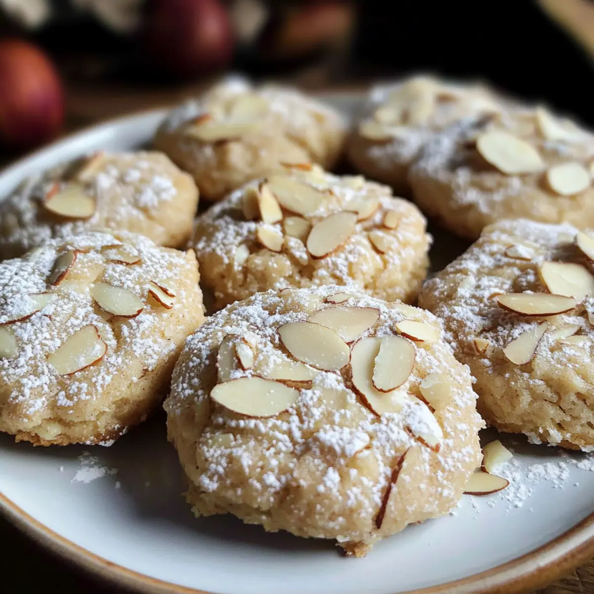 - Mandelsplitter – bieten eine knusprige Textur und verstärken das Mandelaroma; achten Sie darauf, diese gleichmäßig im Teig zu verteilen.