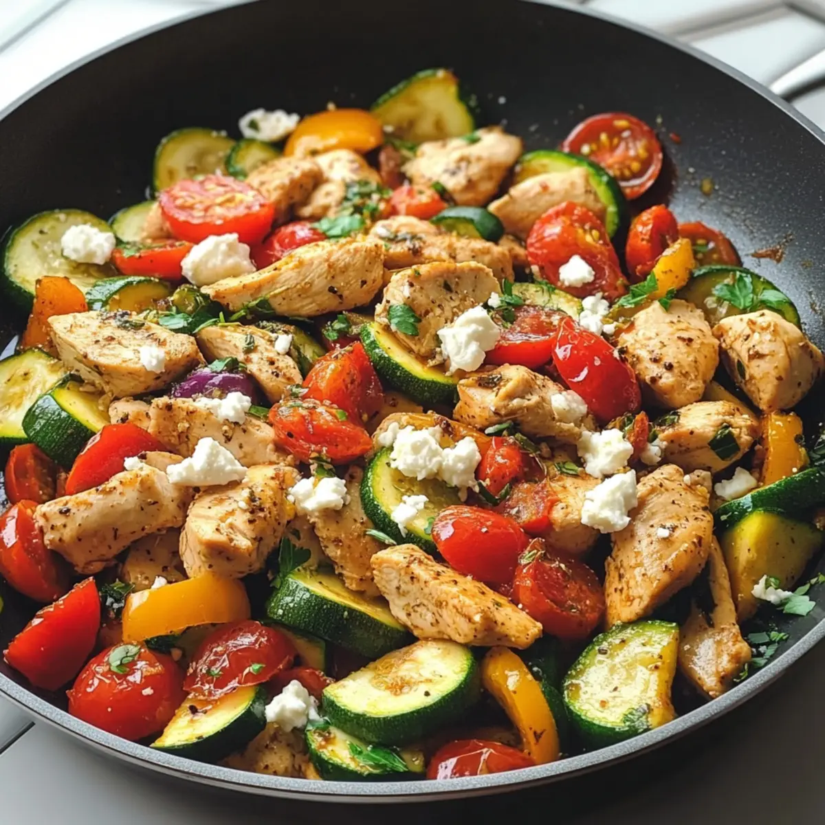 Die Mittelmeer-Hühnchen-Pfanne ist perfekt für die Vorbereitung im Voraus! Sie können das Hühnchen bis zu 24 Stunden im Voraus in Streifen schneiden und mit Salz, Pfeffer und Gewürzen marinieren, um den Geschmack zu intensivieren. Ebenso lassen sich Gemüse wie Zucchini, Paprika und Zwiebeln schneiden und in einem luftdichten Behälter im Kühlschrank aufbewahren, wo sie sich bis zu 3 Tagen halten. Achten Sie darauf, das Gemüse in der trockenen Umgebung zu lagern, um ihre Frische zu bewahren. Wenn Sie bereit sind zu kochen, erhitzen Sie das Öl, braten Sie zuerst die Zwiebeln und den Knoblauch an und fügen Sie dann das marinierte Hühnchen sowie das vorbereitete Gemüse hinzu. So genießen Sie ein schnelles, leckeres und gesundes Gericht an einem hektischen Wochentag!