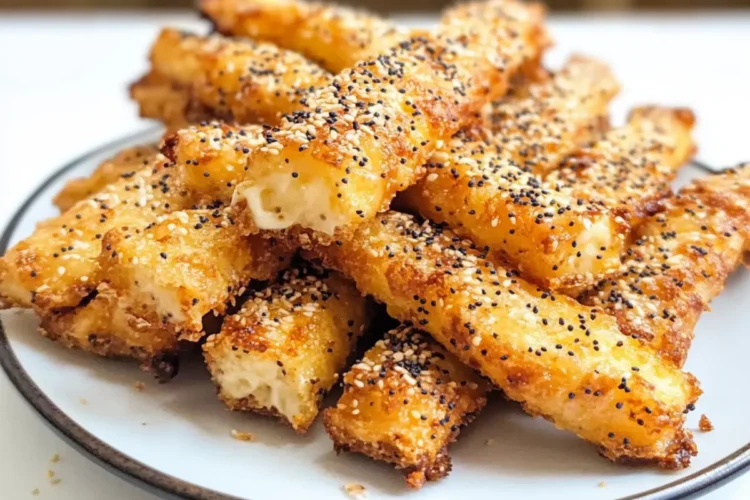 - Optional: Mohn oder Sesam über die Käsestangen streuen.