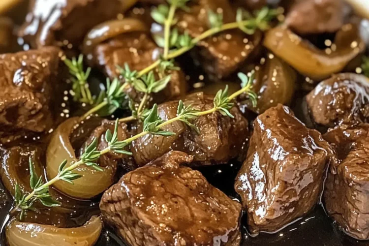 Zartes Rindfleisch in Balsamico-Zwiebel-Sauce