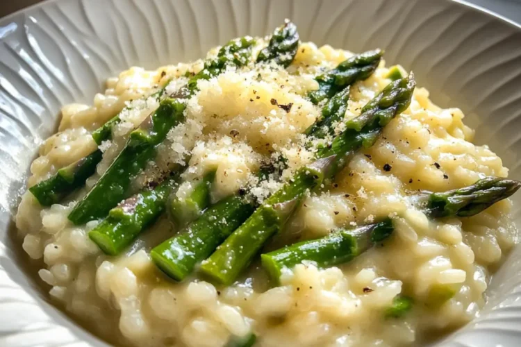 Ein köstliches Risotto mit grünem Spargel und Parmesan ist ein Frühlingsgericht, das Einfachheit und Geschmack vereint.