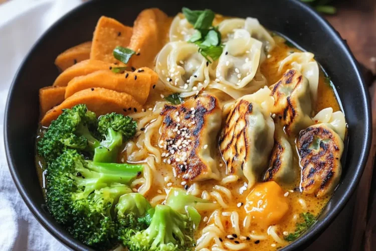 • Gemüse- oder Hühnerbrühe – Basis für die Ramen; sorgt für reichen Geschmack. Verwende Gemüsebrühe für eine vegane Version.