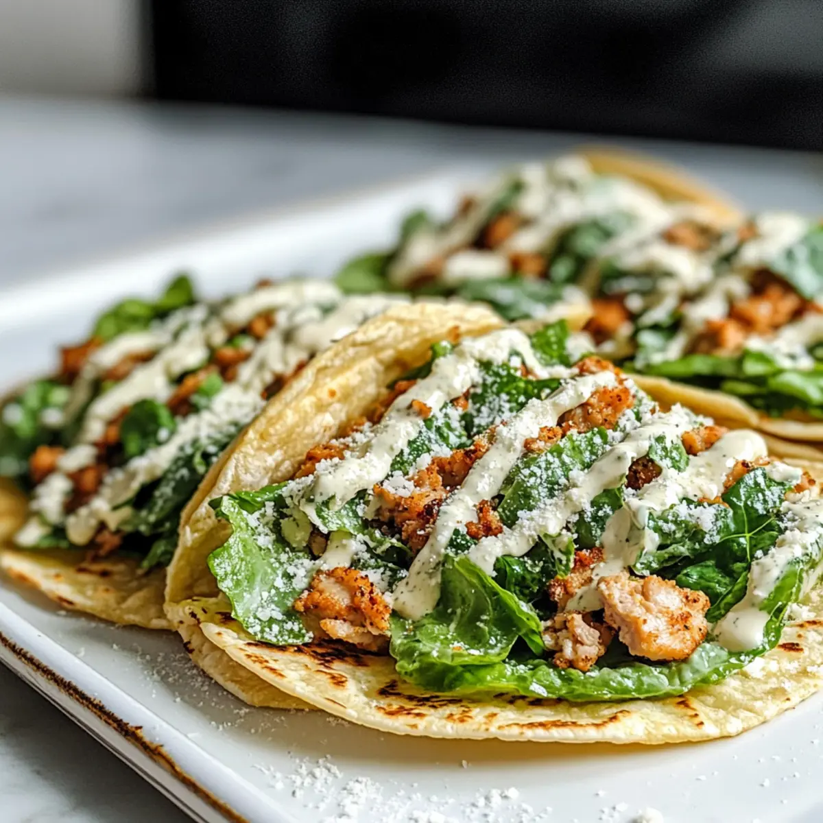 • Frische Salsa: Eine würzige Salsa mit Pico de Gallo bringt die richtige Schärfe mit und erfrischt jeden Biss. Sie kann die Tacos optisch aufwerten und harmoniert hervorragend mit dem Caesar-Dressing.