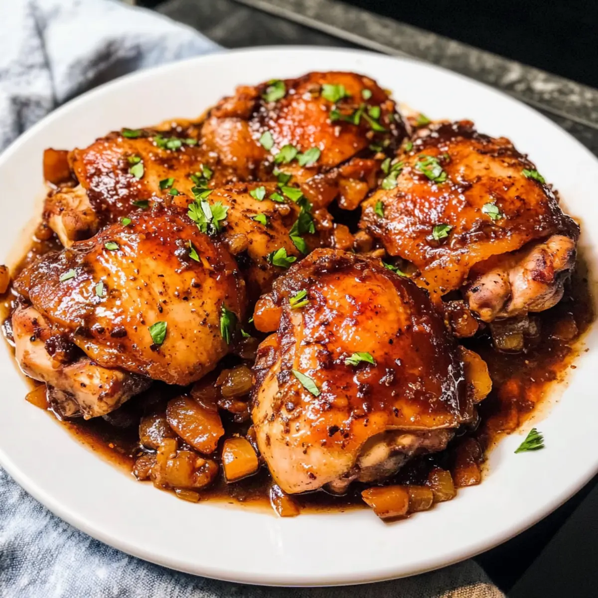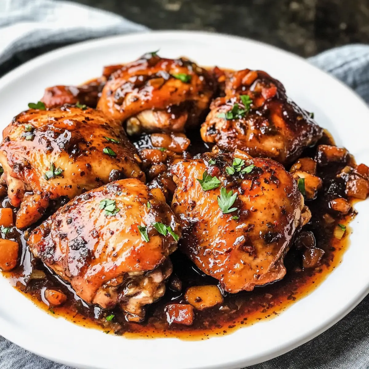 Saftige Topfhähnchenschenkel in Balsamico-Soße