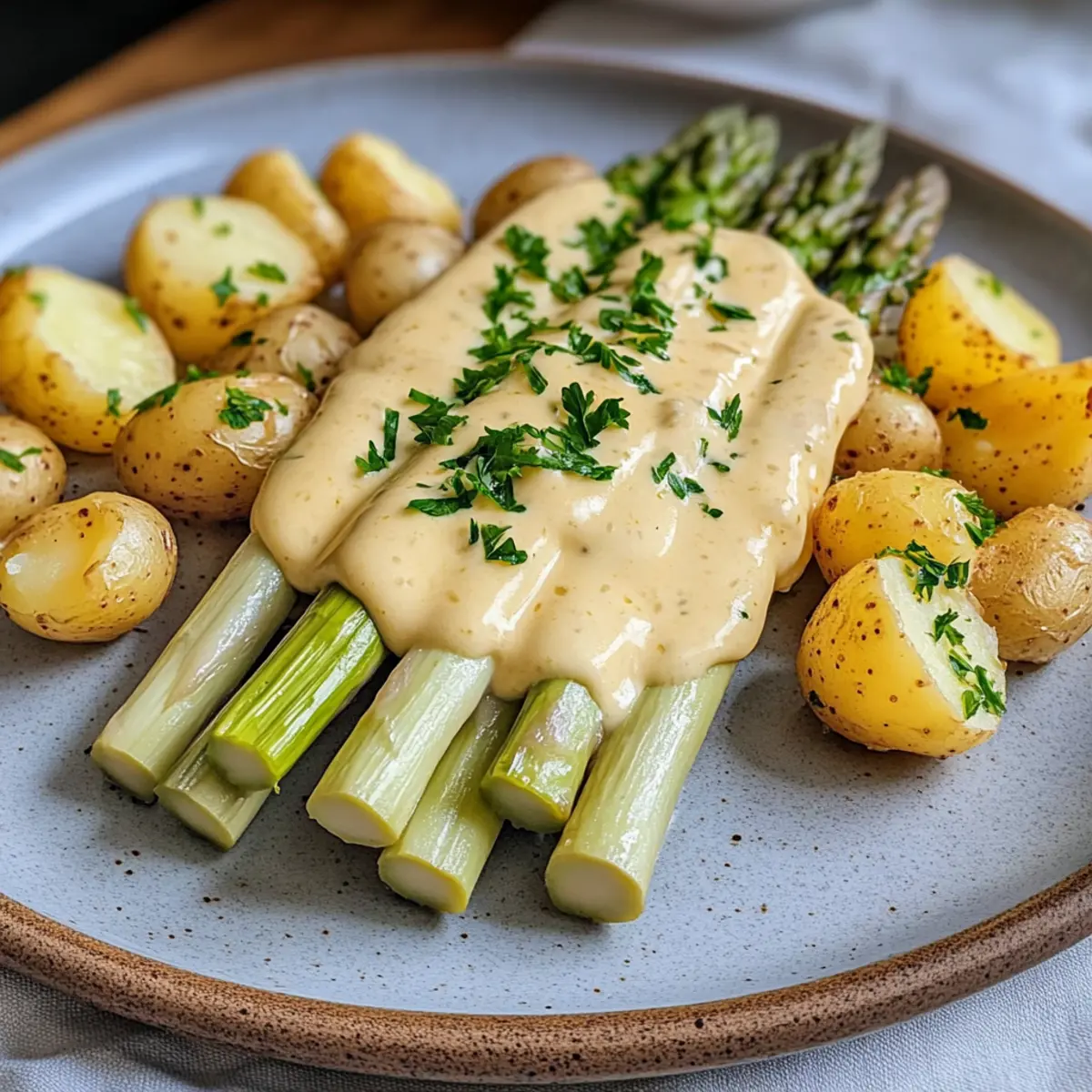 - Weißer Spargel – Das Herzstück dieses Gerichts; frische, feste Stangen sind entscheidend für den Geschmack.