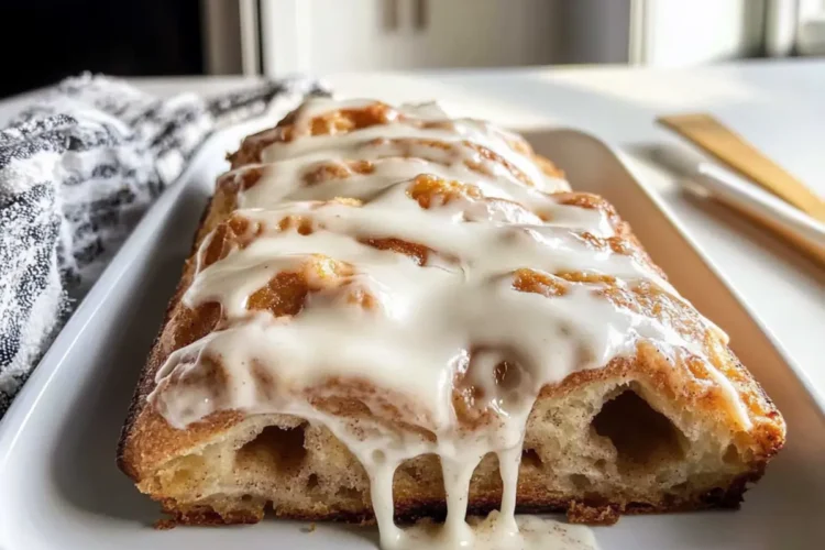 - Die Glasur über das warme Brot gießen und servieren.